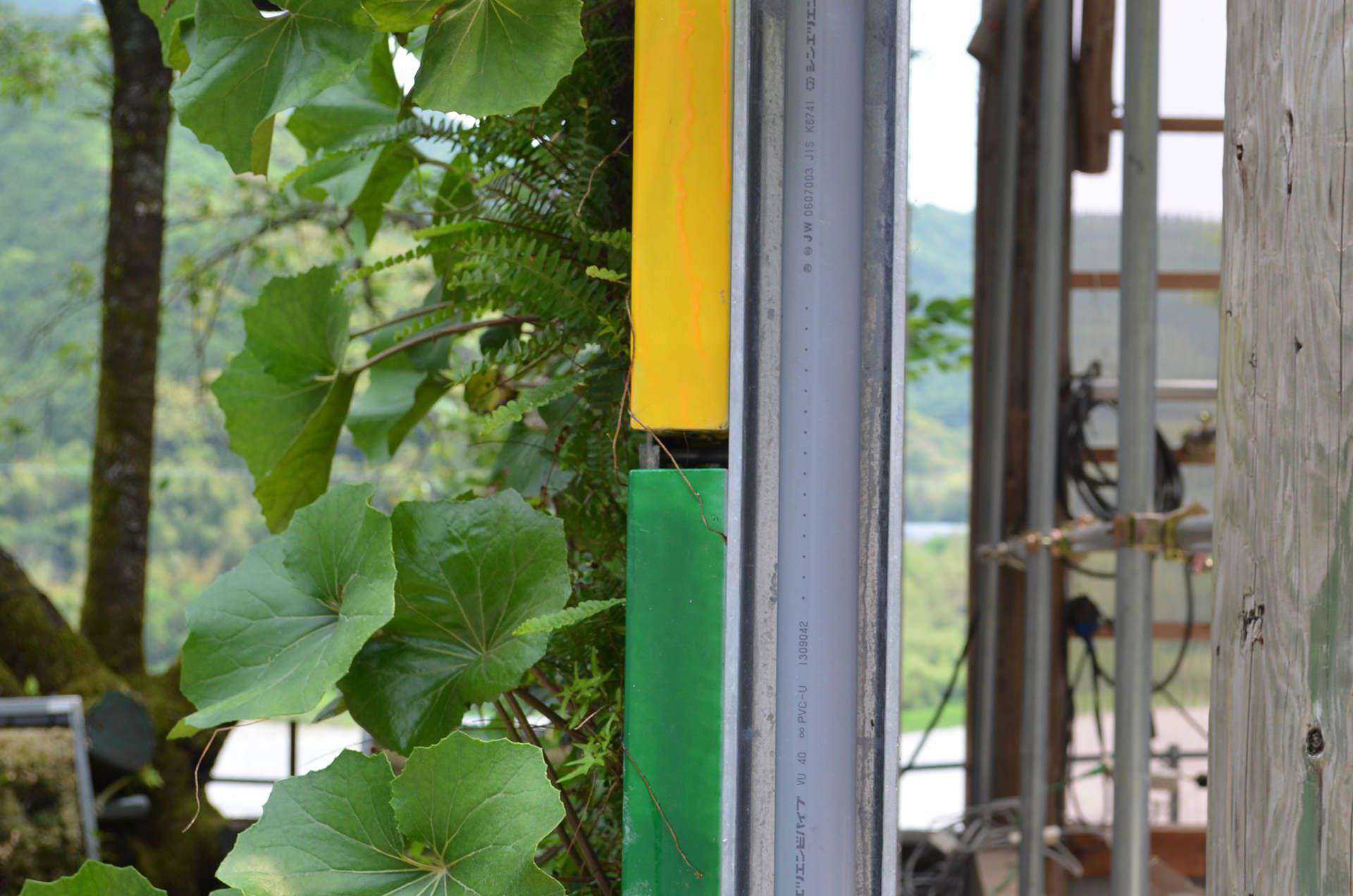 通常の壁面緑化は建物の壁面に沿って施工することがほとんどですが、弊社の壁面緑化システムは、独立構造物となっているため建物との間に5~10cmほどの隙間が生まれます。