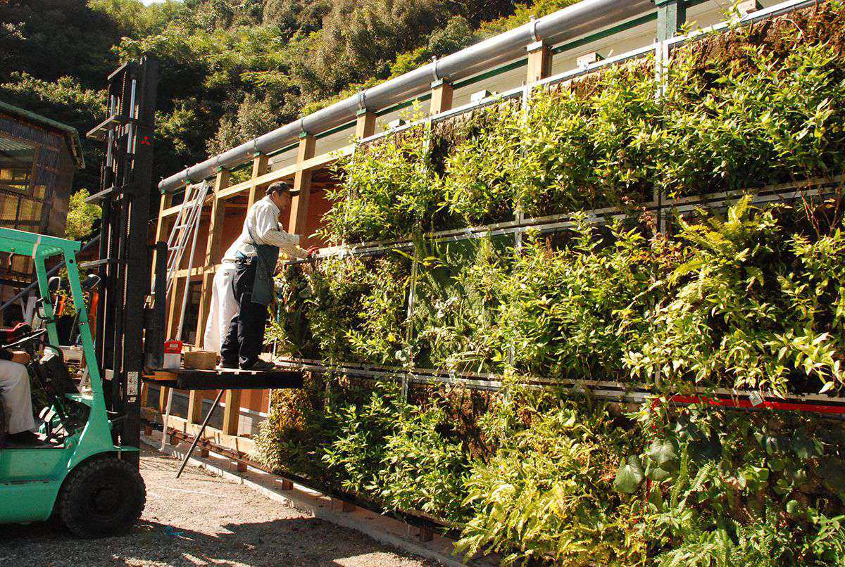 弊社の壁面緑化システムが、1m×1mのパネルになっており、個別に交換が可能です。