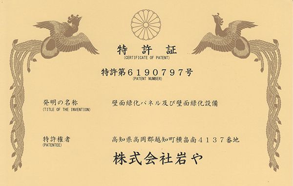 2017年8月10日 壁面緑化の壁面緑化パネルおよび壁面緑化設備が特許登録されました。