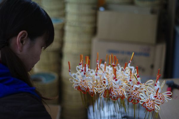 - 生の竹を使用せず、ちりめん布を巻いて製作